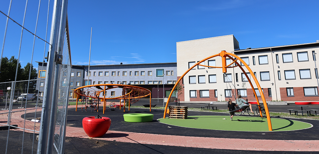 – Rakennustyömaa on alueena lähes sama kuin keväälläkin, mutta supistuu sen verran, että uudet leikkivälineet ja koripallokenttä saadaan käyttöön.