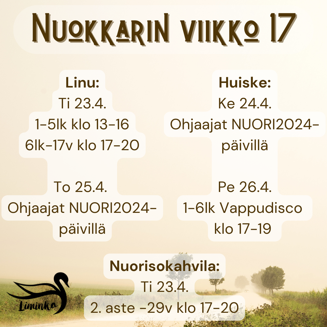 Ti 23.4. 1-5lk klo 13:15-16, 6lk-17v klo 17-20