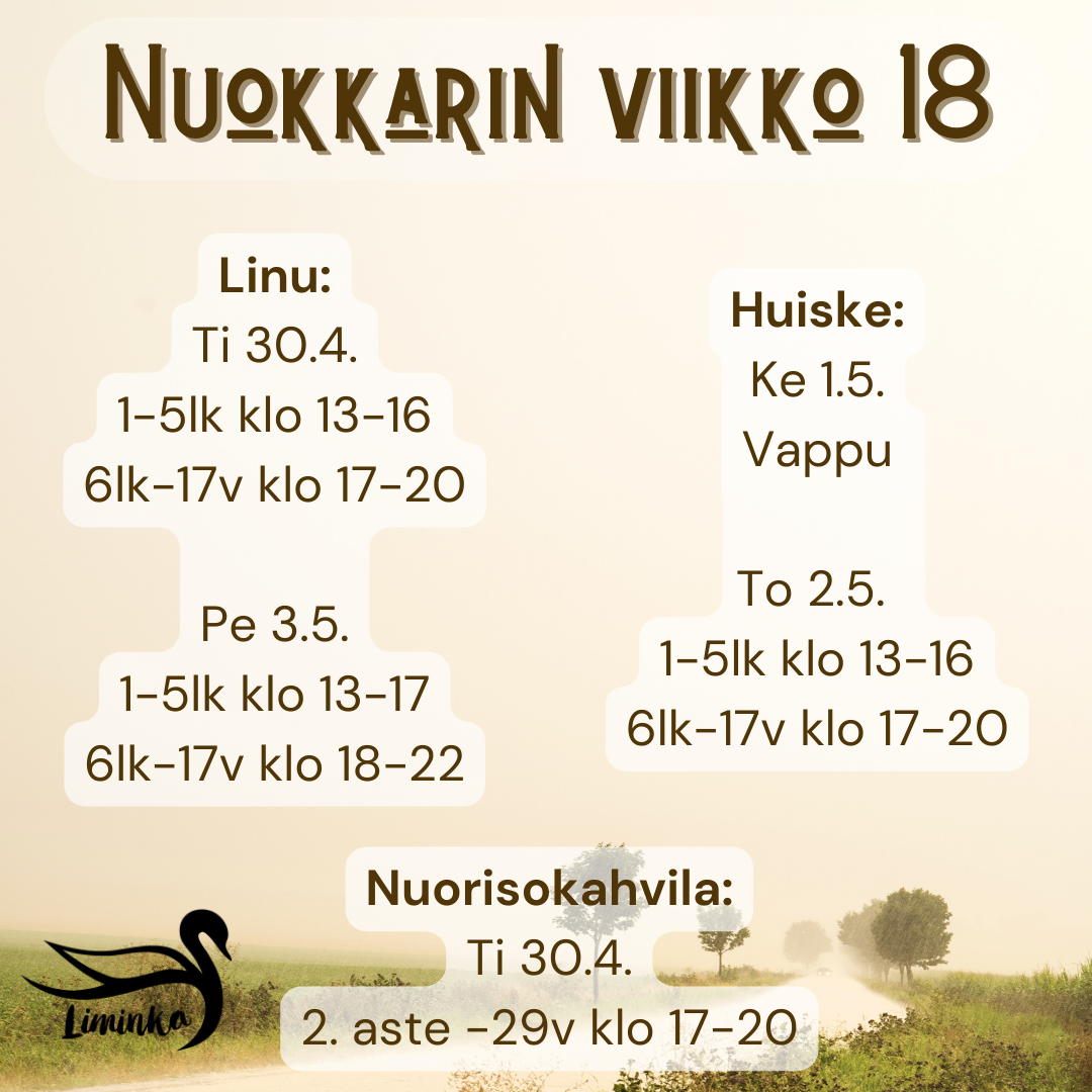 Ti 30.4. 1-5lk klo 13:15-16, 6lk-17v klo 17-20