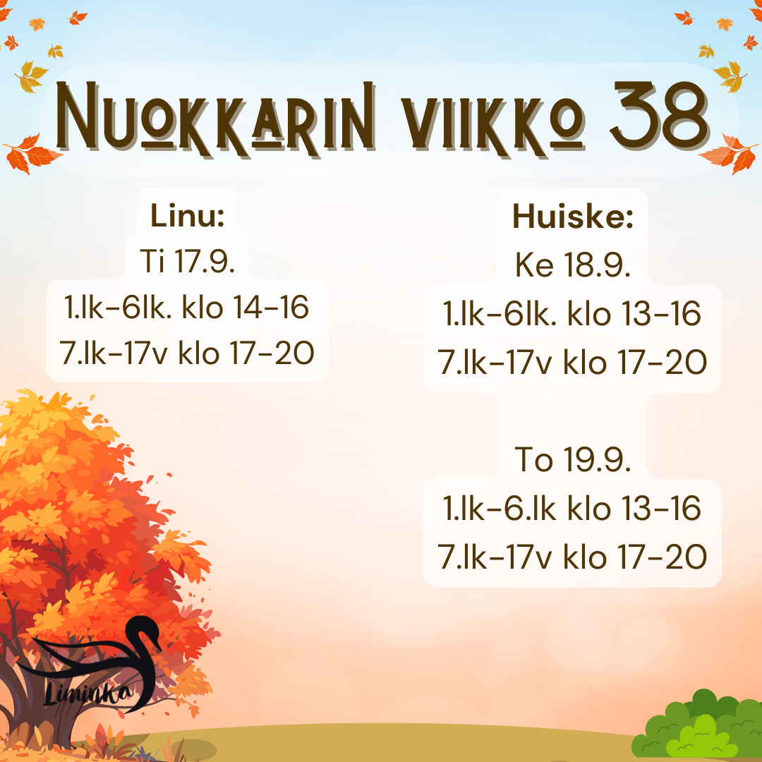 To 19.9. 1.lk-6.lk klo 13-16 ja 7.lk-17v klo 17-20